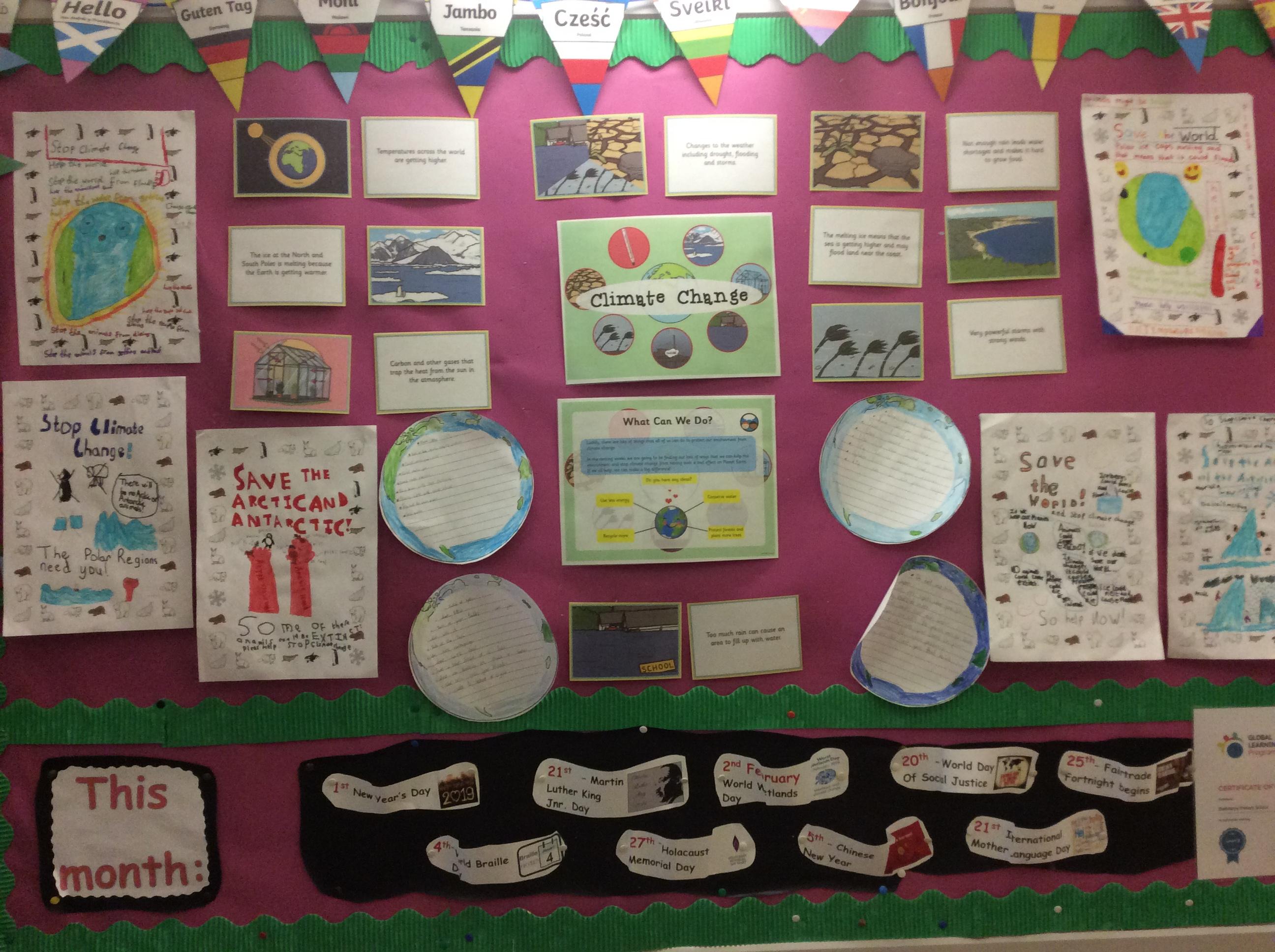 Below you can see a sample of some of our Global Learning Boards. This is changed on a monthly basis and always includes the main Global Events for the month.