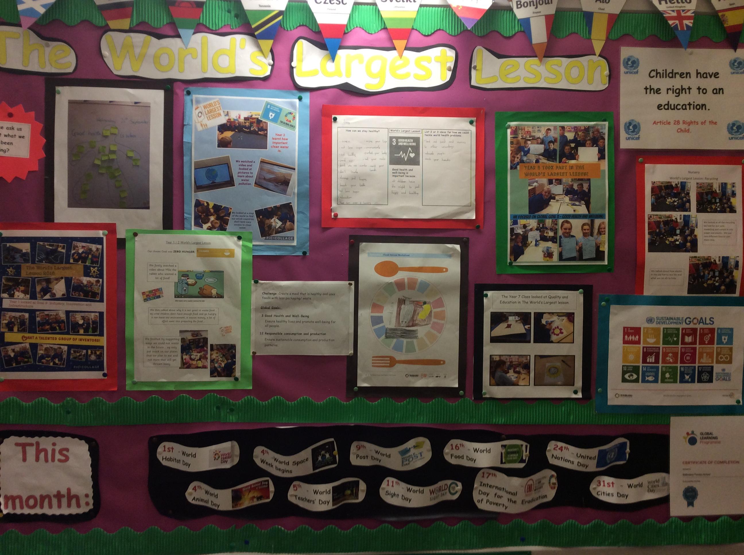 In September all classes participated in 'The World's Largest Lesson' It was a great learning experience right form Nursery through to Year 7.