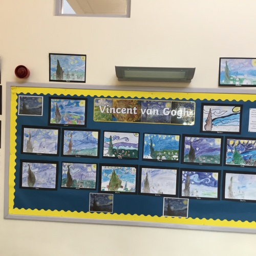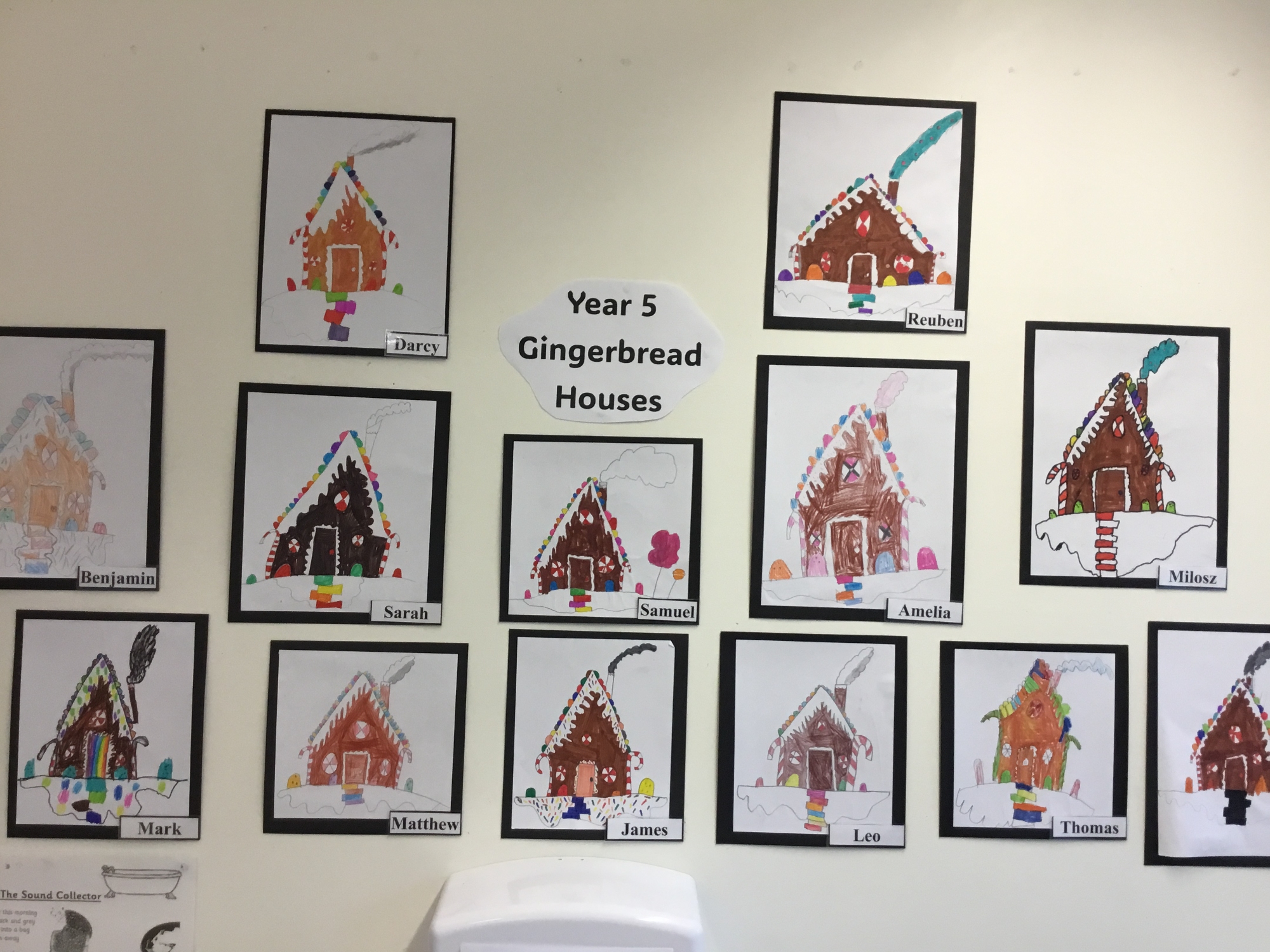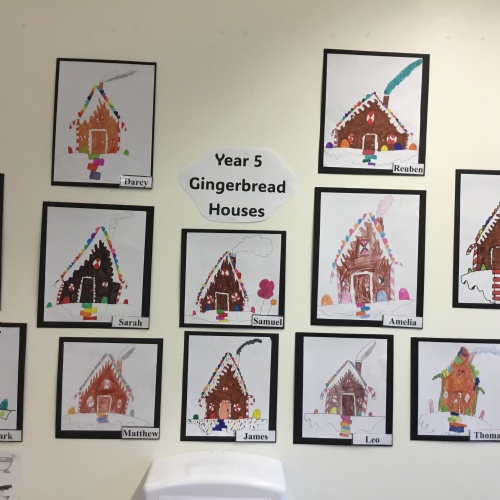 The class have done some amazing artwork - they made their copies of Van Gogh's "Starry Night", as well as drawing some Winter scene Gingerbread Houses.