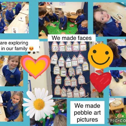 For the start of our topic, we thought carefully about our faces and our bodies. We made personal history books and illustrated 'Who is in my Family?'