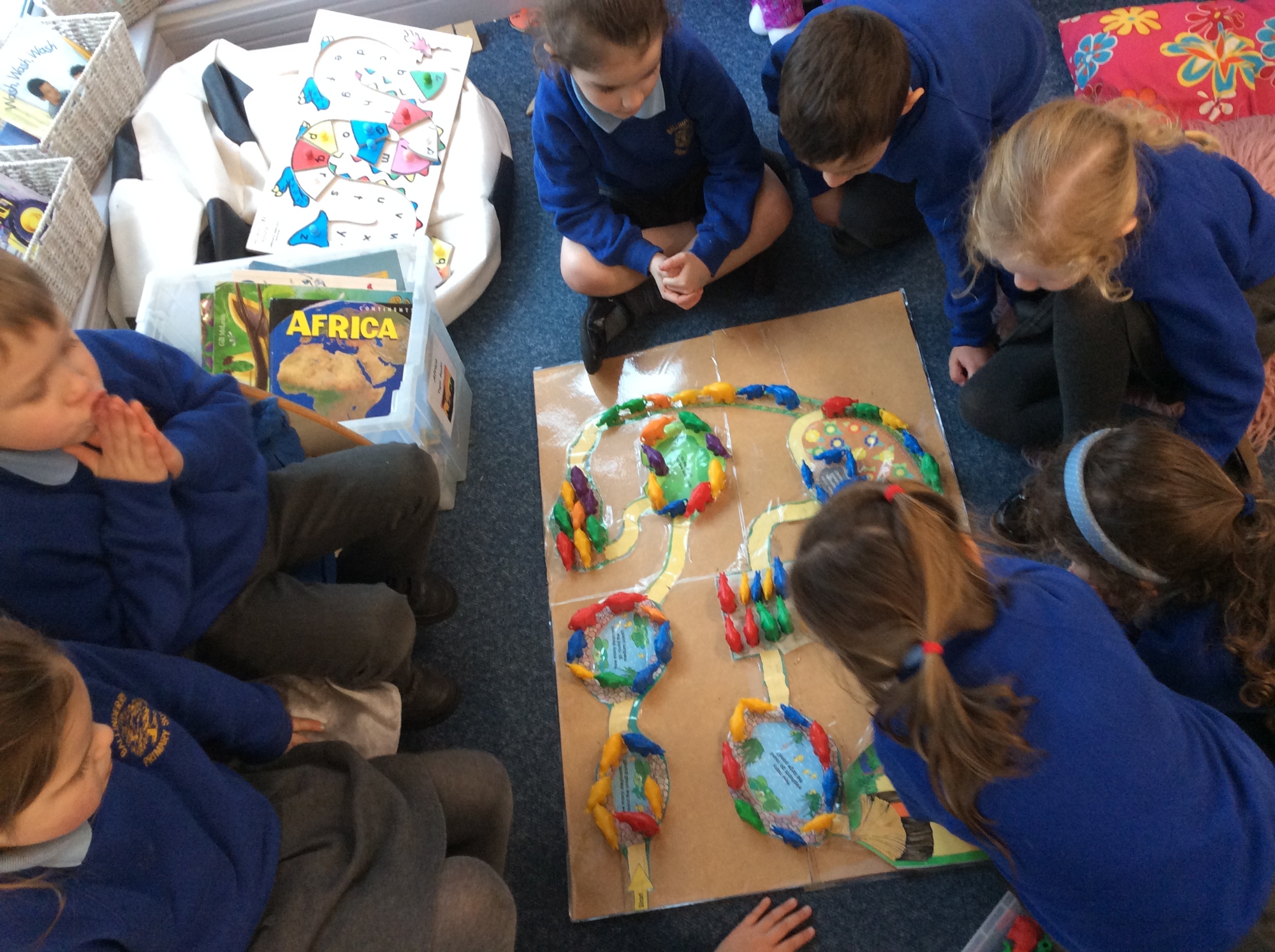 We are exploring 'Area' by using our linking elephants to cover parts of our African Village.