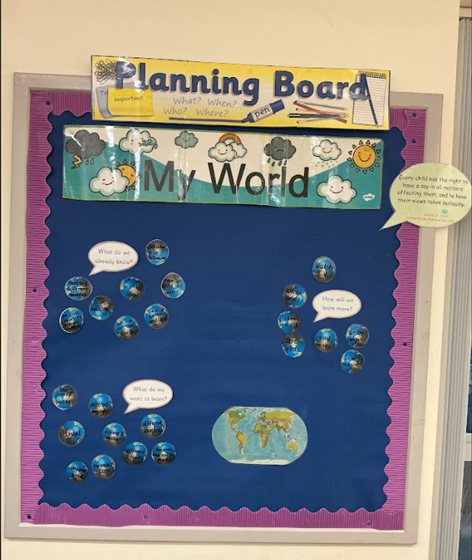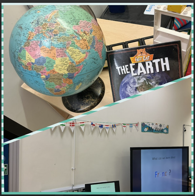 Our current topic is called 'My World'. This includes learning about different countries and cultures, language and food. We are also looking at our local area and where we live and go to school!